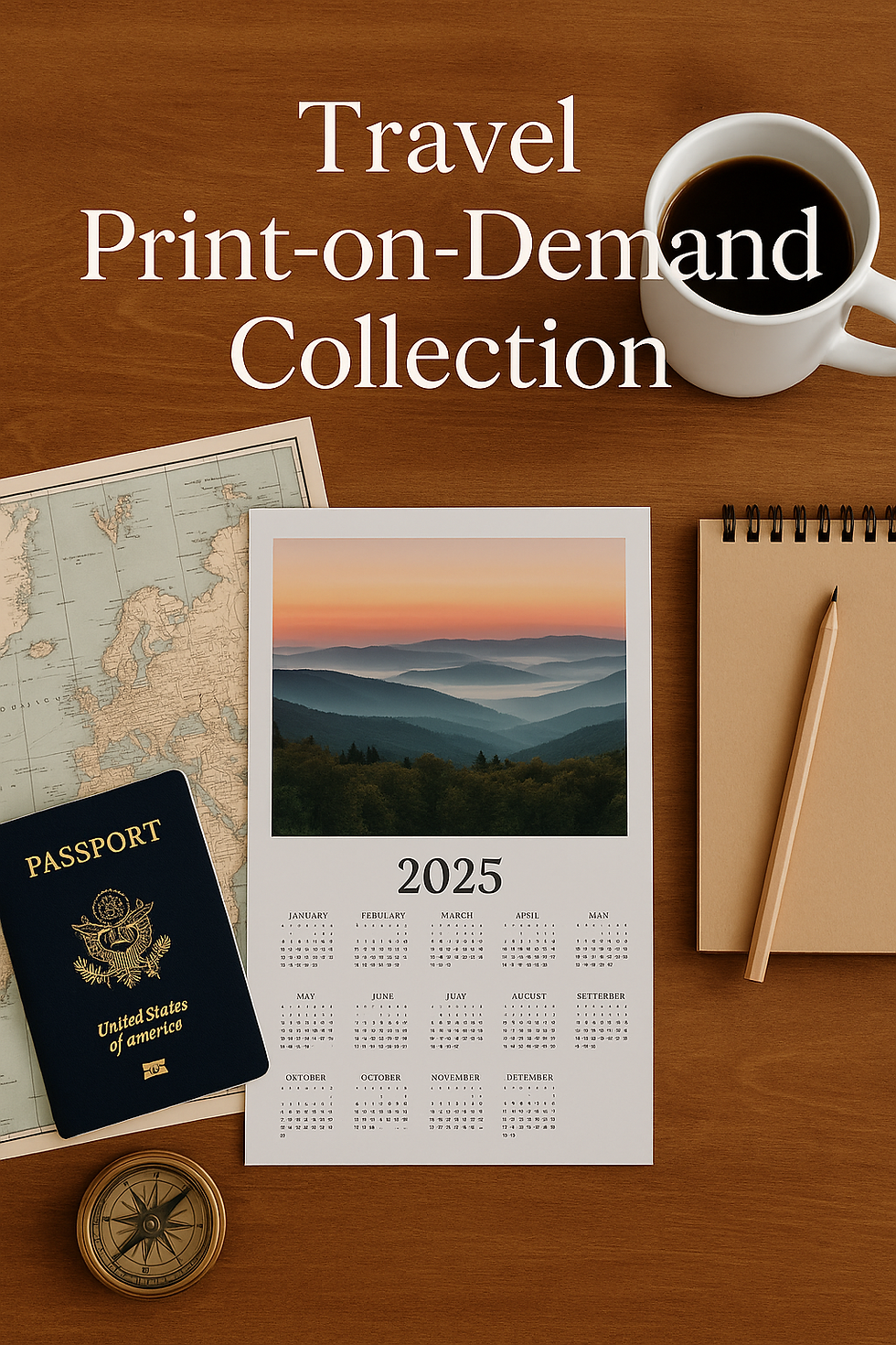 Custom travel-themed home decor and gifts featuring beautiful destination photography and wanderlust designs. From scenic wall art and travel calendars to personalized mugs and tote bags, bring the spirit of adventure into your daily life with our print-on-demand collection.